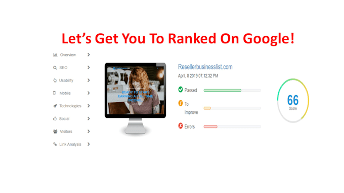 We send you a detailed report up to of tips on how to increase your website rankings through a whole website fix in simple laymens terms so you can understand. See Our attached example report you will be pleased at the quality report you receive!