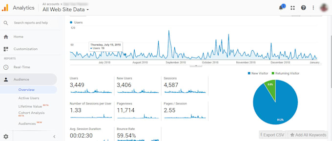 I shall provide you the report on where your visitors are from & how long they spend on your site.